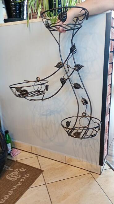 Kwietnik kuty wiszący na trzy kwiaty o wysokości 75 cm kolor stare złoto z czarnym.